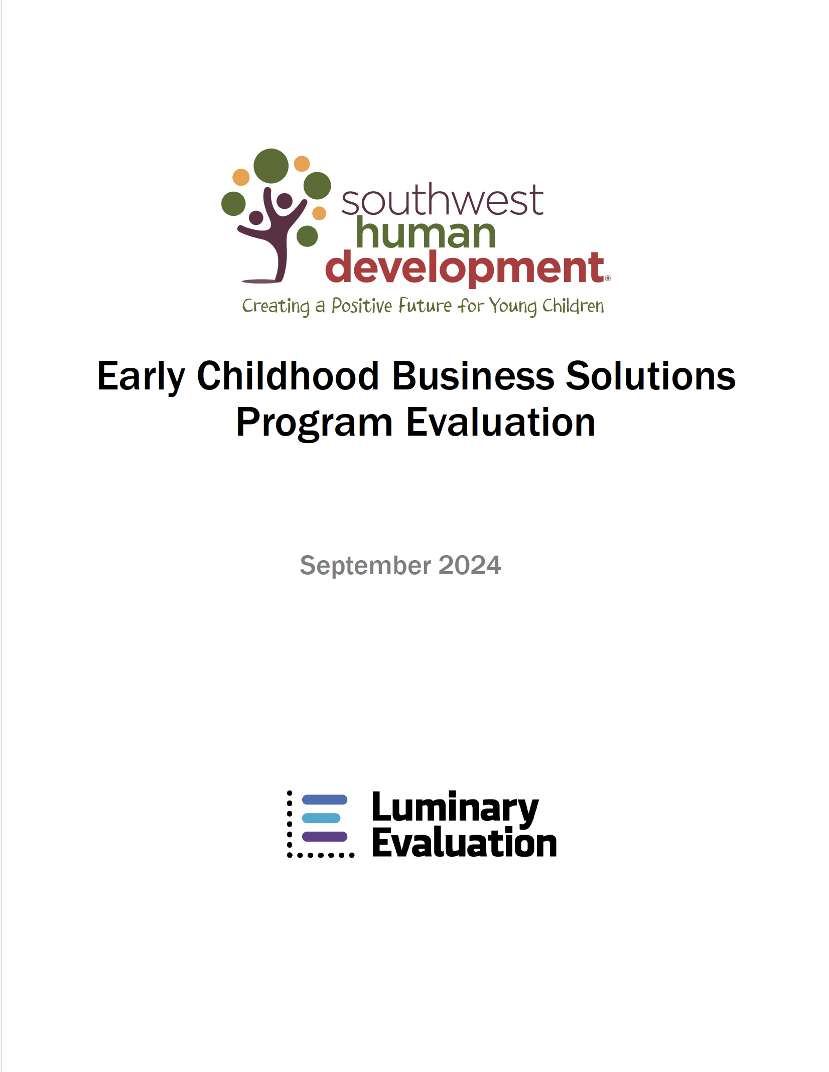 In partnership with Southwest Human Development (SWHD), Luminary Evaluation examined the reach and impact of the Early Childhood Business Solutions (ECBS) program, a five-year initiative that has grown to serve more than 400 early care and education providers across Arizona. Through individual coaching, technology adoption, peer networking, and connections to business resources, ECBS helps child care owners and directors build the financial knowledge and operational skills needed to run sustainable programs. This evaluation draws on existing program data alongside newly collected survey and interview data to assess participant outcomes and program effectiveness. Providers report meaningful gains in business confidence, streamlined administrative practices, and stronger peer relationships — with many crediting CCMS technology adoption and the program's Iron Triangle of ECE Finance framework as particularly transformative. The report concludes with actionable recommendations for tailoring services to family child care programs, differentiating supports by participant skill level, and strengthening data infrastructure to track impact over time.