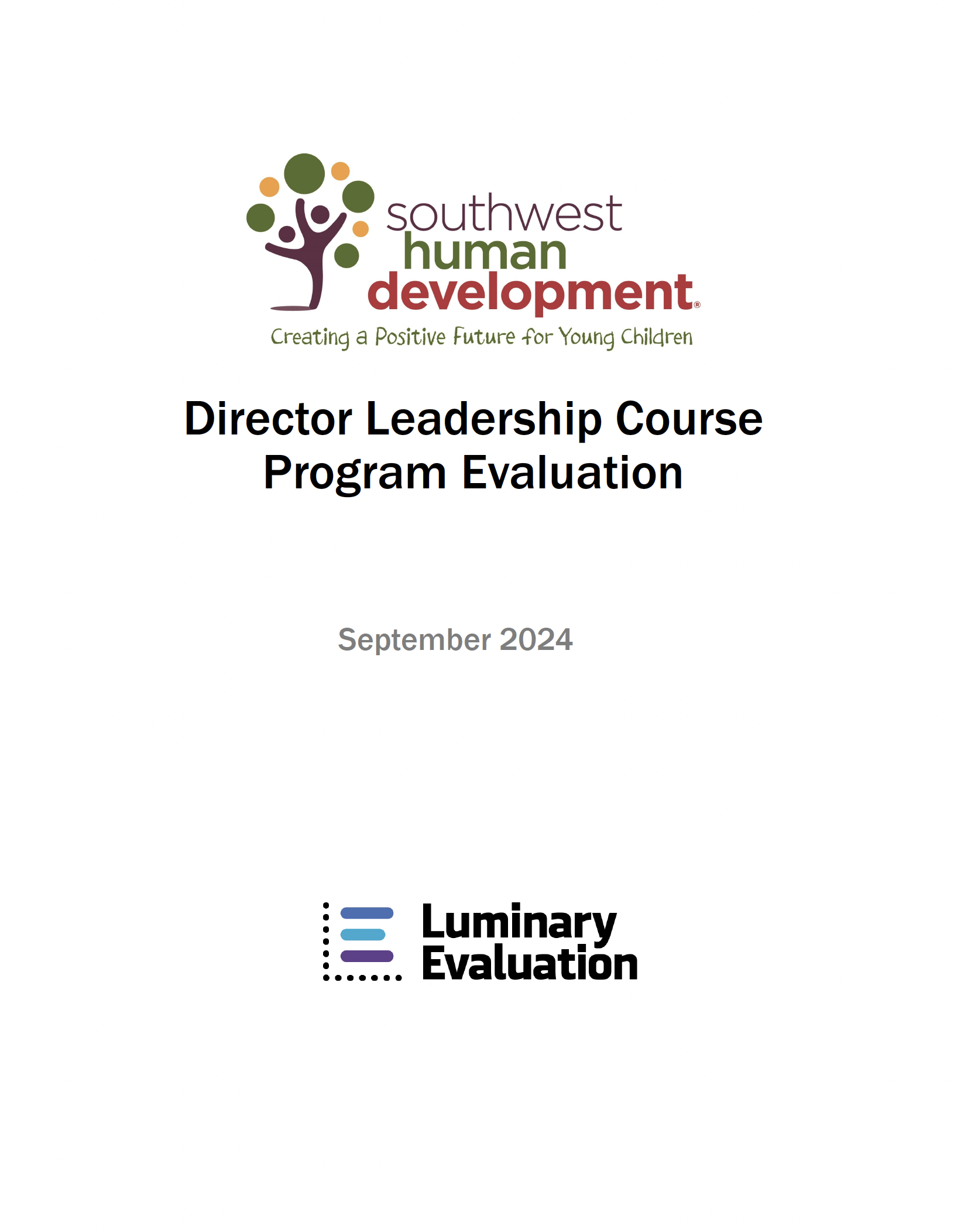 In partnership with Southwest Human Development (SWHD), Luminary Evaluation conducted a retrospective program evaluation of the Director Leadership Course, a four-month professional development experience housed within SWHD's Early Childhood Business Solutions program. This report documents participants' growth in leadership self-awareness, organizational climate development, and staff management practices. It also highlights the program's success in filling a recognized gap in training for early childhood directors transitioning into administrative roles. Findings draw on a content analysis of participant assignments, a participant survey, interviews, and focus group data collected across five cohorts. The report offers evidence of meaningful behavior change among participants and concrete recommendations for strengthening recruitment communications, deepening integration with the broader Business Solutions program, and scaling the course to reach more ECE leaders across Arizona and beyond.